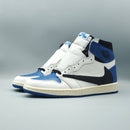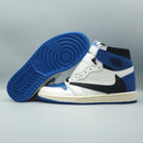 1. Design Exclusivo: A combinação das estéticas da Fragment Design e de Travis Scott resulta em um modelo icônico, com a paleta “Royal Blue” e o Swoosh reverso adicionando um toque moderno ao estilo retrô do Jordan 1.